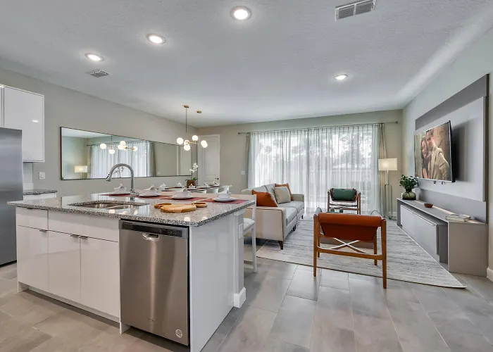 Situé dans la localité de "Celebration", villa se trouve à 38 minutes en voiture de l'aéroport international d'Orlando. Vous pourrez accéder au boulevard Emerald Island à 25 minutes de marche et au Parc à thème Disney's Animal Kingdom®, qui est à 10 minutes en voiture.
